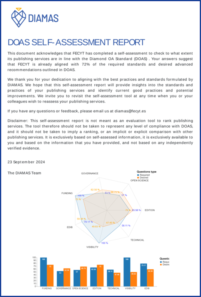 Abbildung 3: Screenshot DOAS Self-Assessment Report (Quelle: DIAMAS-Projekt)